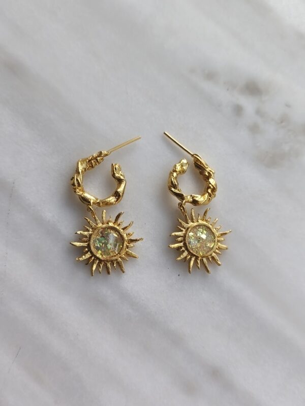 The product is made of 24k goldplated/silverplated bronze with Swarovski stones. The length of the earrings is 5cm.