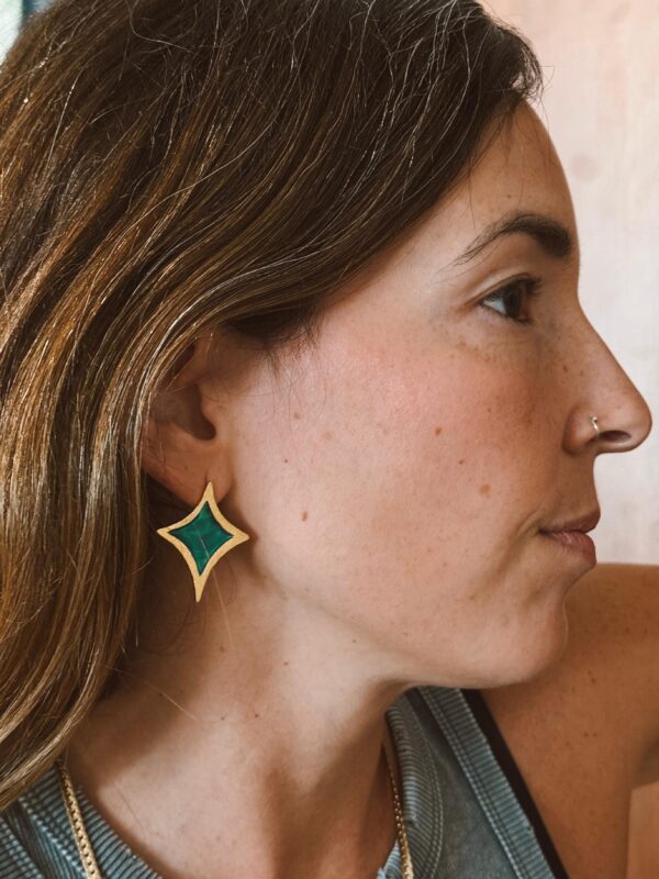 Brujula belongs to Tesoro escondido collection. The design is made of 24k goldplated bronze and enamel. The size of the product is 4,1cm x 3cm and the length of the chain is 0,40cm.