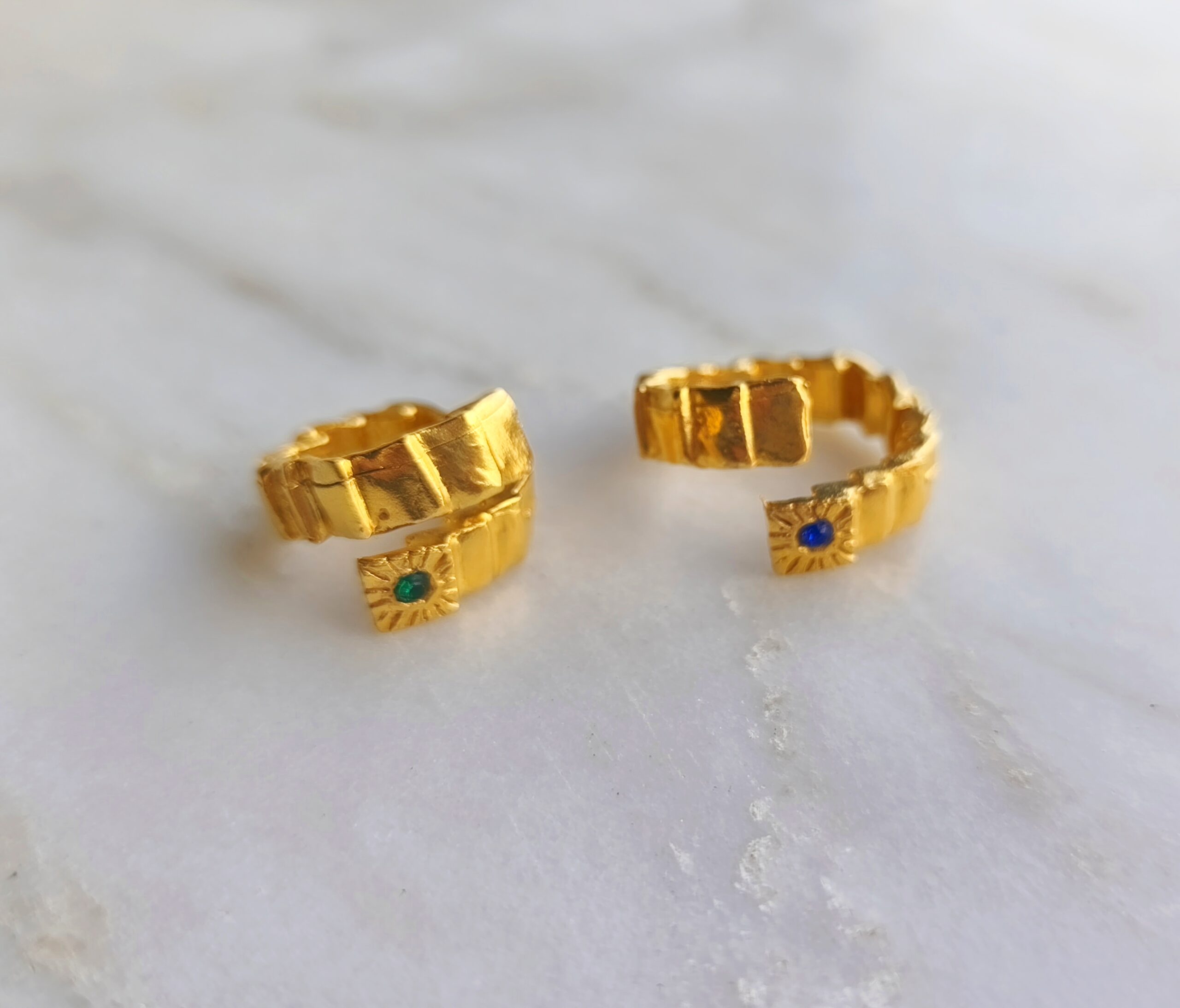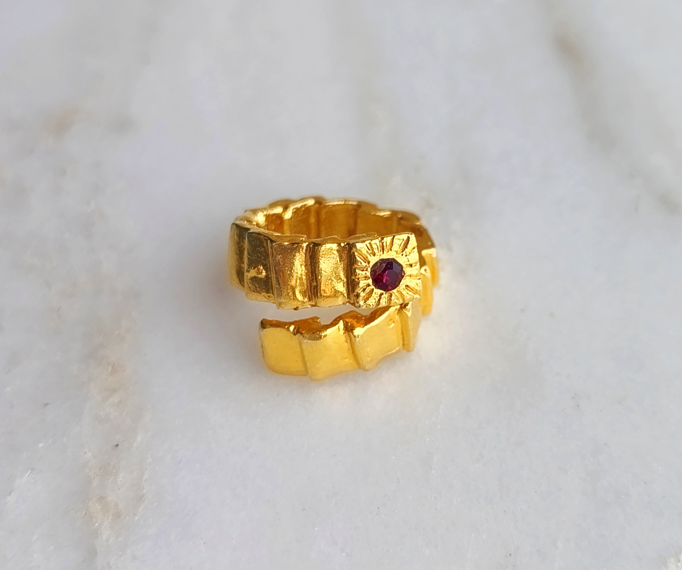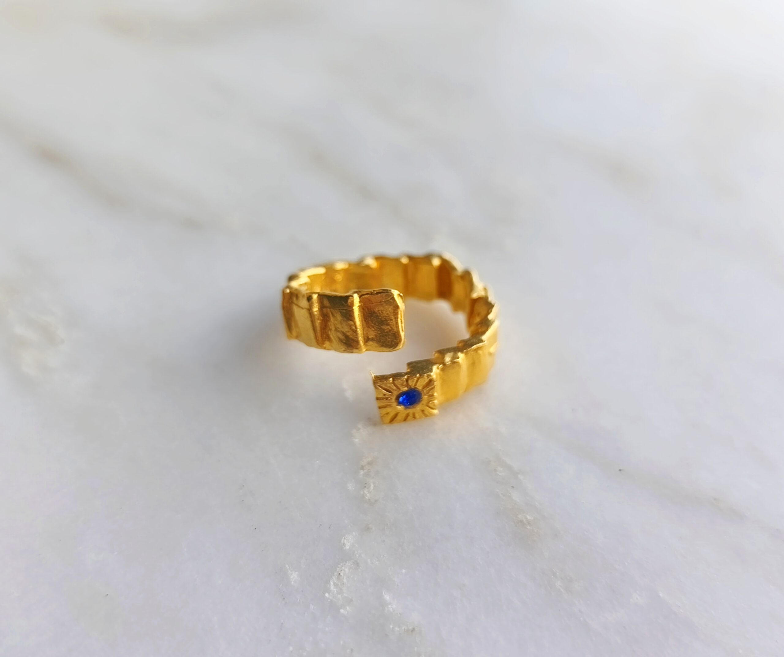 Escaliers ring belongs to “C’est la vie” collection. The design is made of 24k goldplated bronze with swarovski stone. It is an adjustable open ring.
