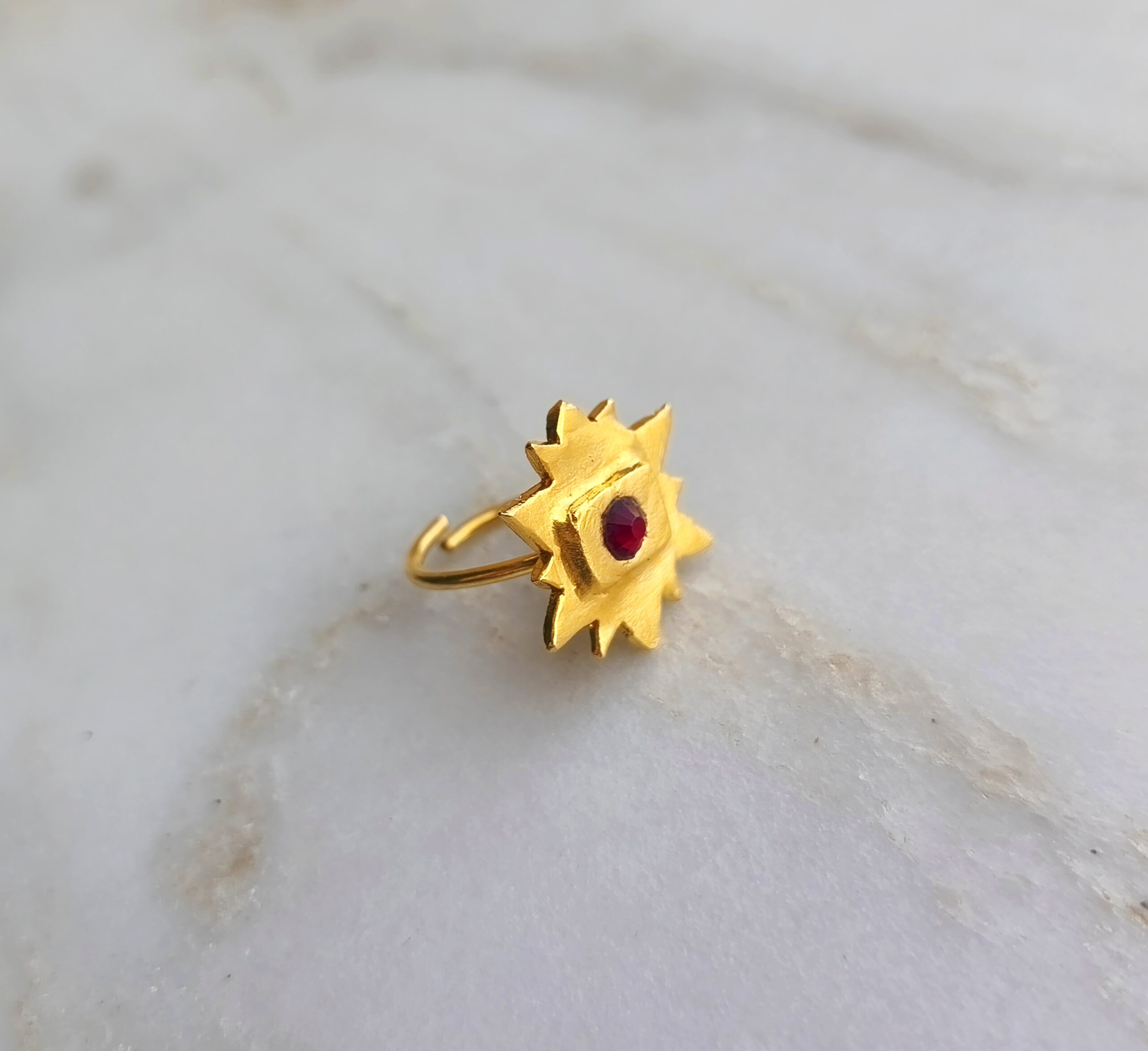 Etoiles ring belongs to “C’est la vie” collection. The design is made of 24k goldplated bronze with glass stone. It is an adjustable open ring.