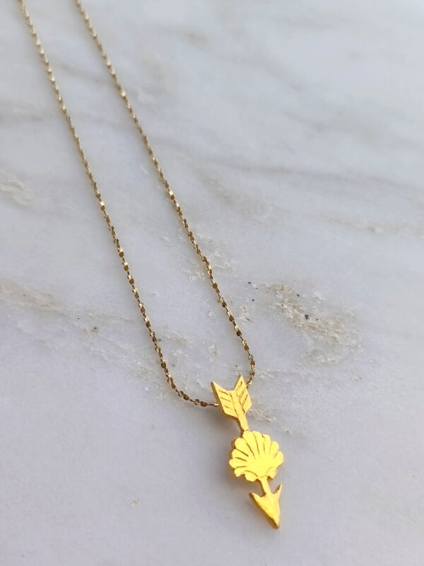 Fleche necklace belongs to “C’est la vie” collection. The design is made of 24k goldplated bronze. The chain is made of steel and the length is 45cm.