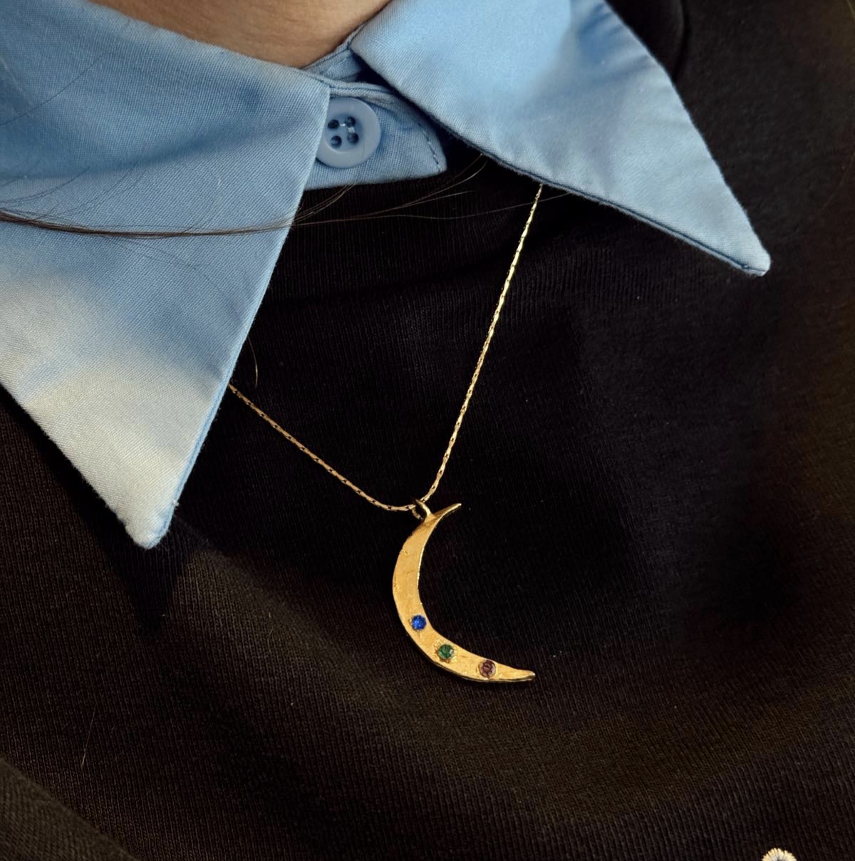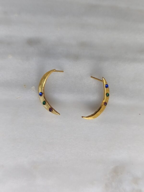 The product is made of 24k goldplated/silverplated bronze with Swarovski stones. The length of the product is 2,5cm. The chain is made of steel and has length 0.45cm.