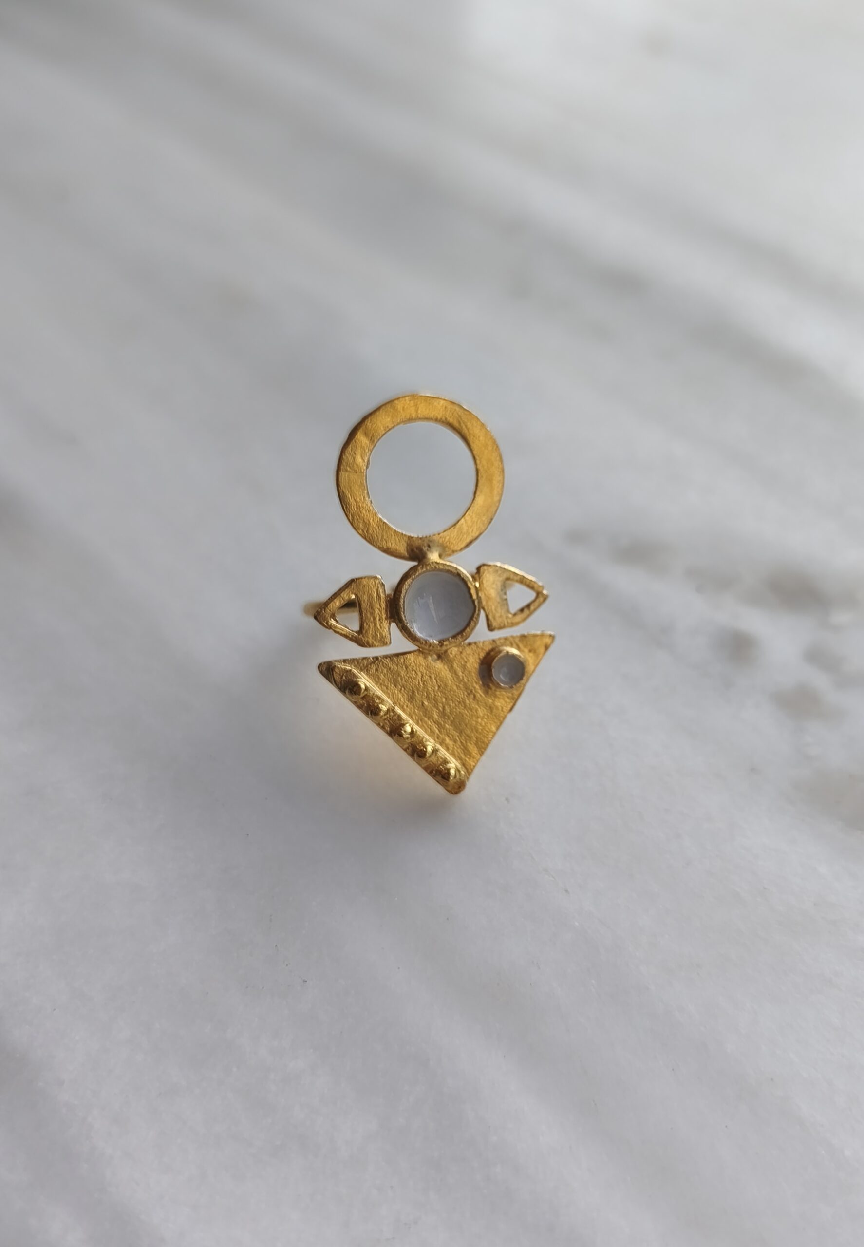 The product is made of 24k goldplated bronze with enamel. It is an adjustable open ring.