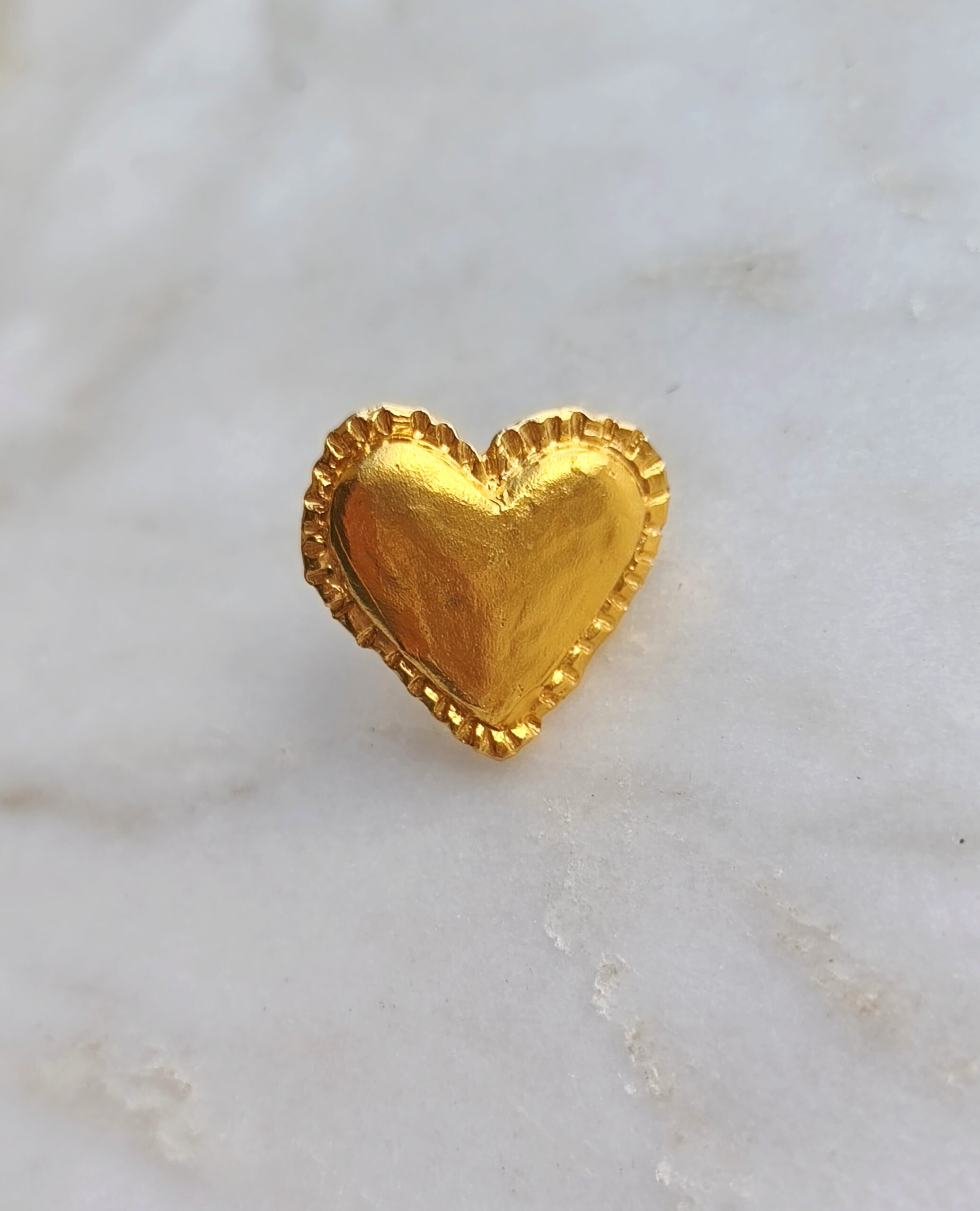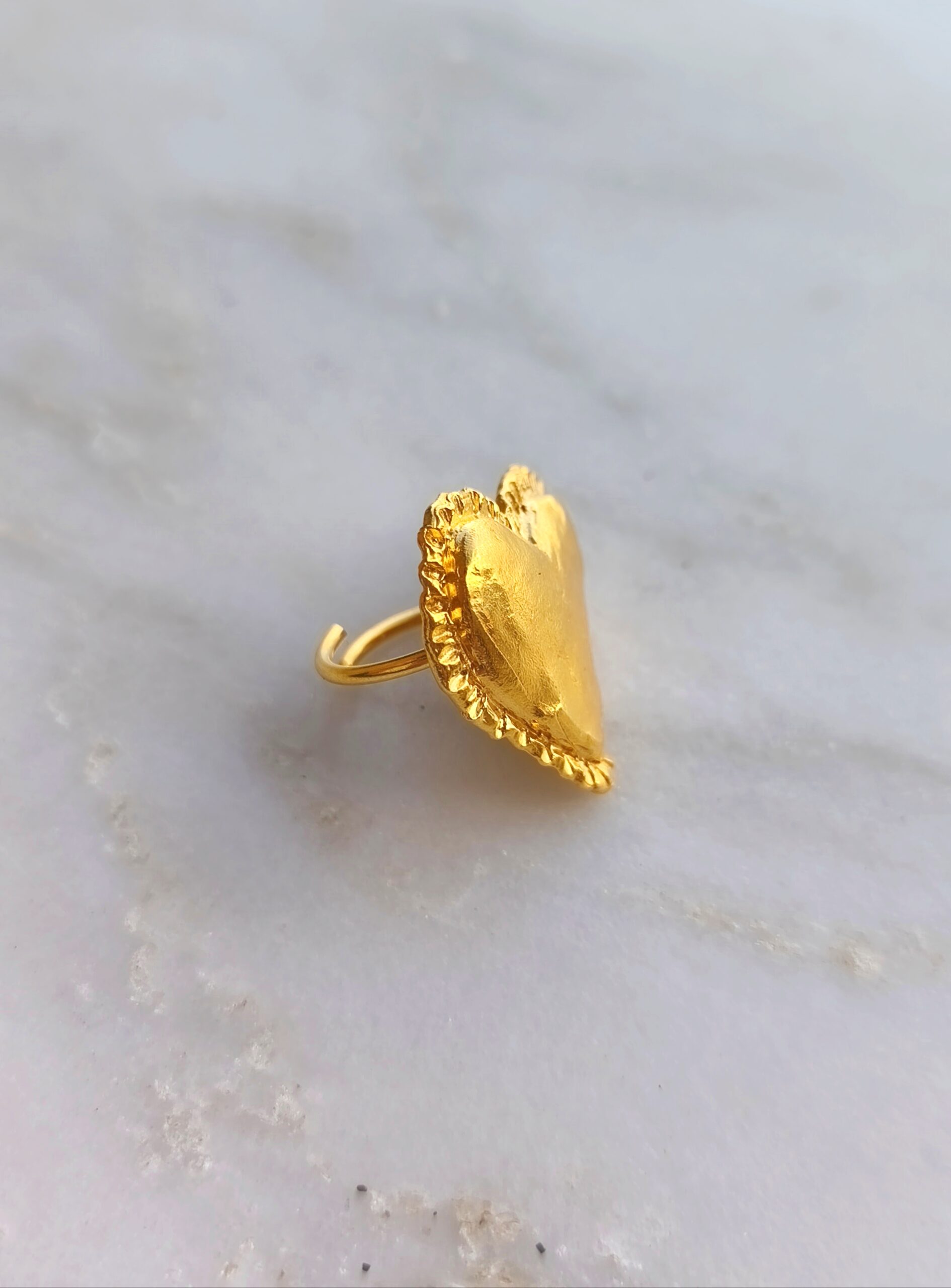 Oeil-coeur ring belongs to “C’est la vie” collection. The design is made of 24k goldplated bronze. It is an adjustable open ring.