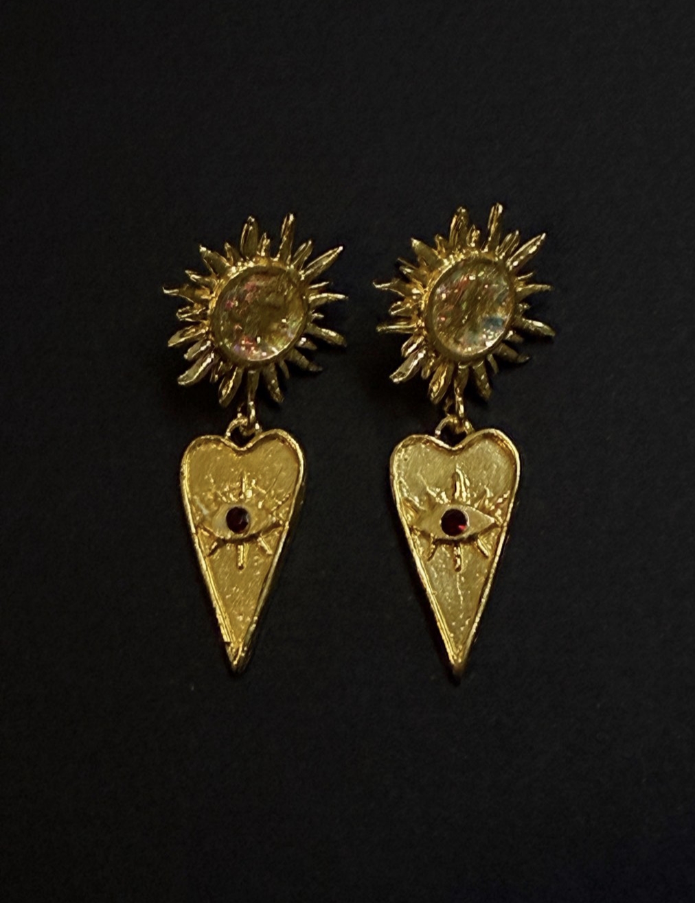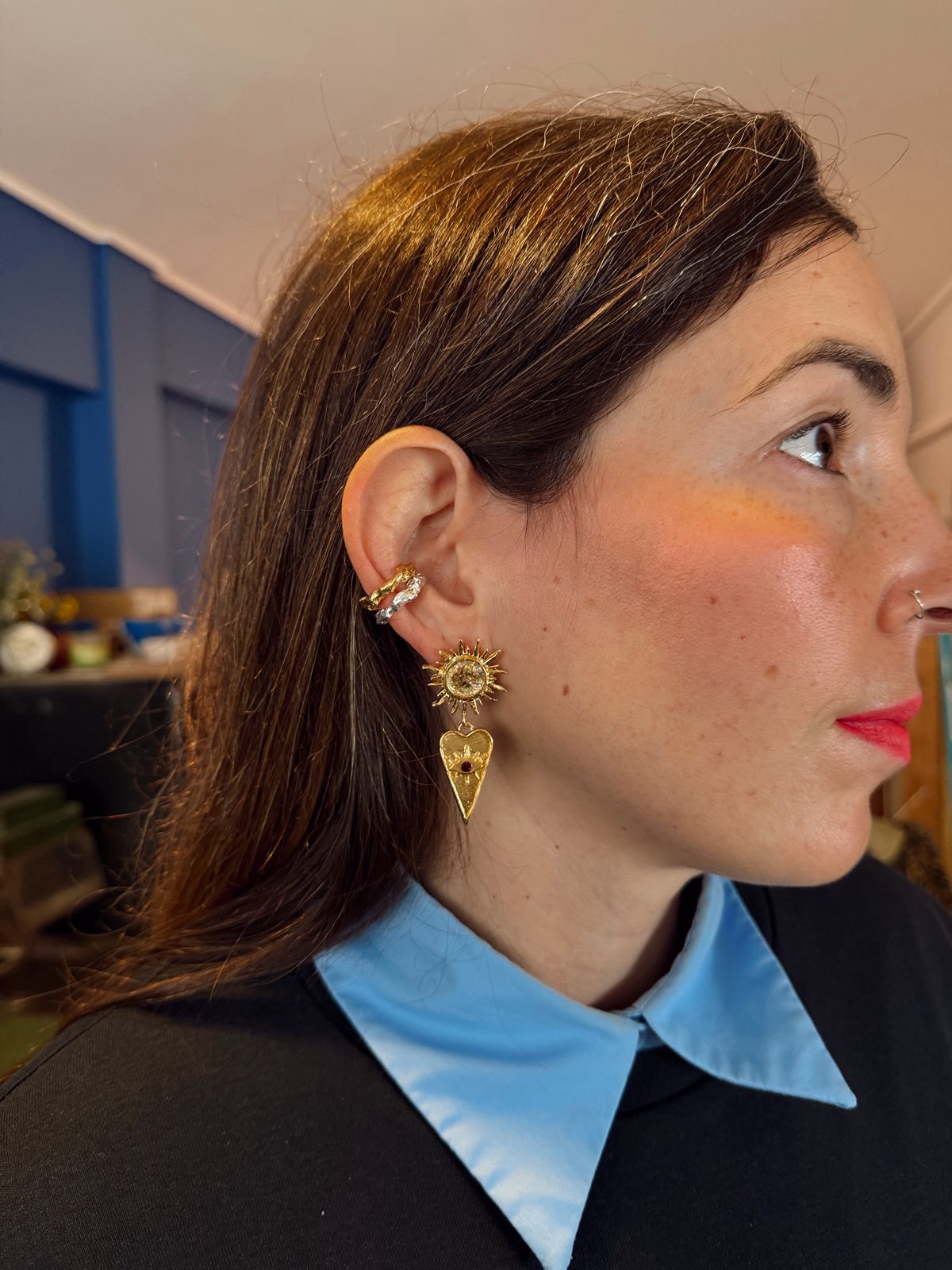 The product is made of 24k goldplated/silverplated bronze with Swarovski stones and golddust. The length of the earrings is 5,2cm