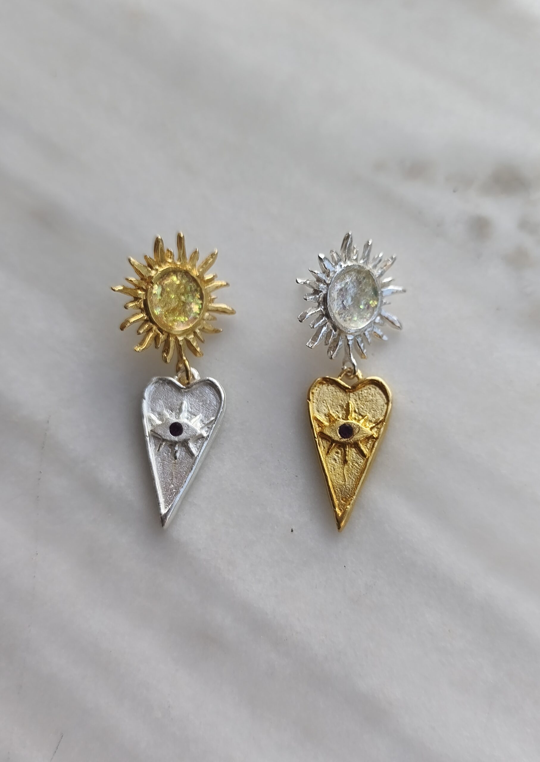 1. The product is made of 24k goldplated/silverplated bronze with Swarovski stones and gold dust. The length of the earrings is 5,2cm