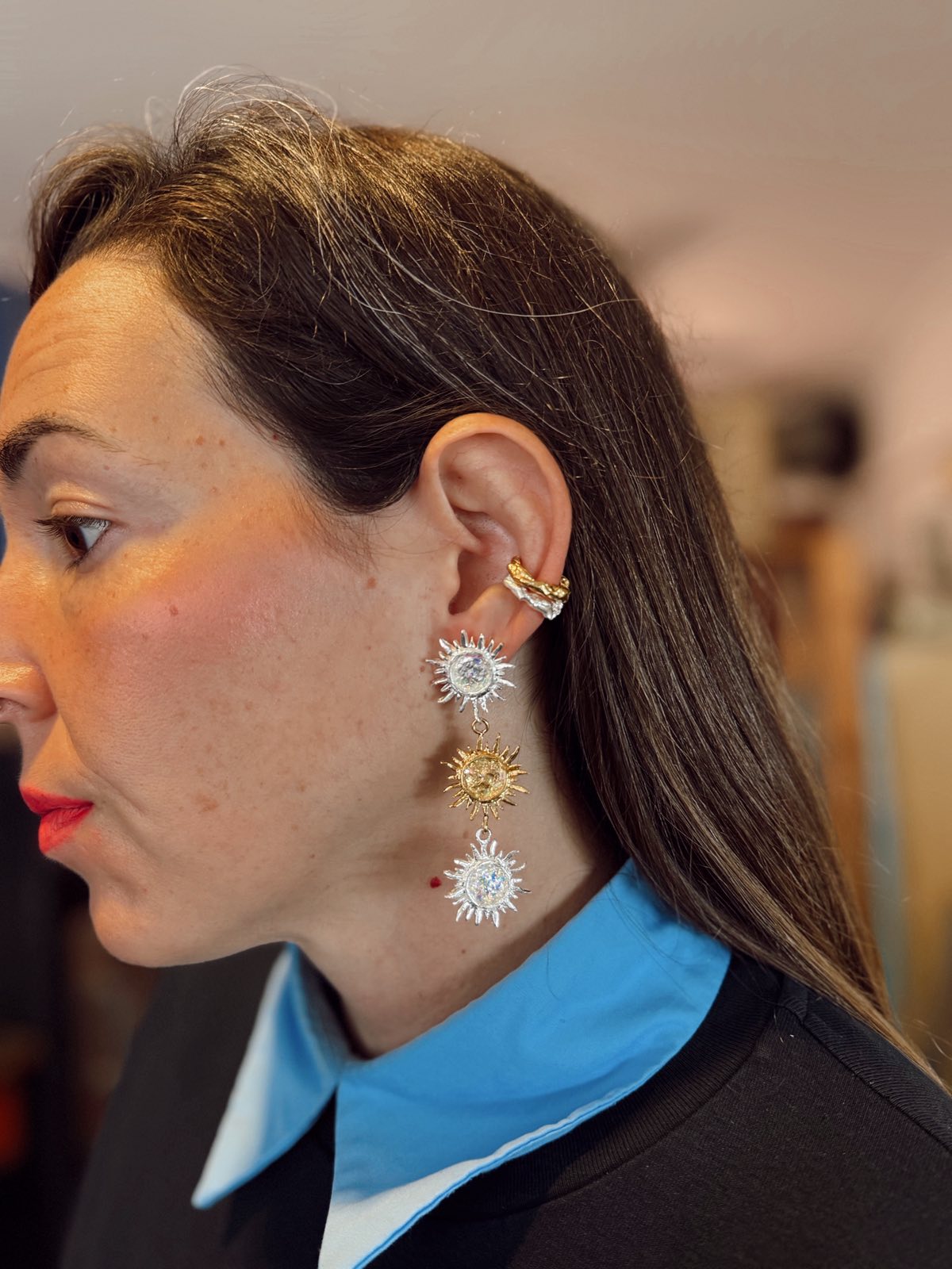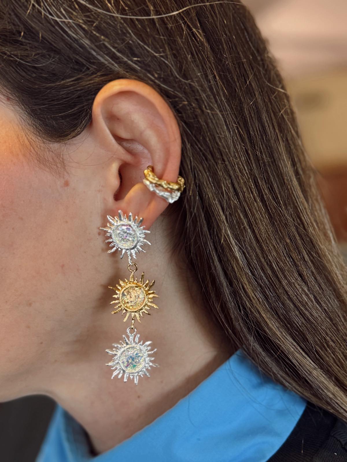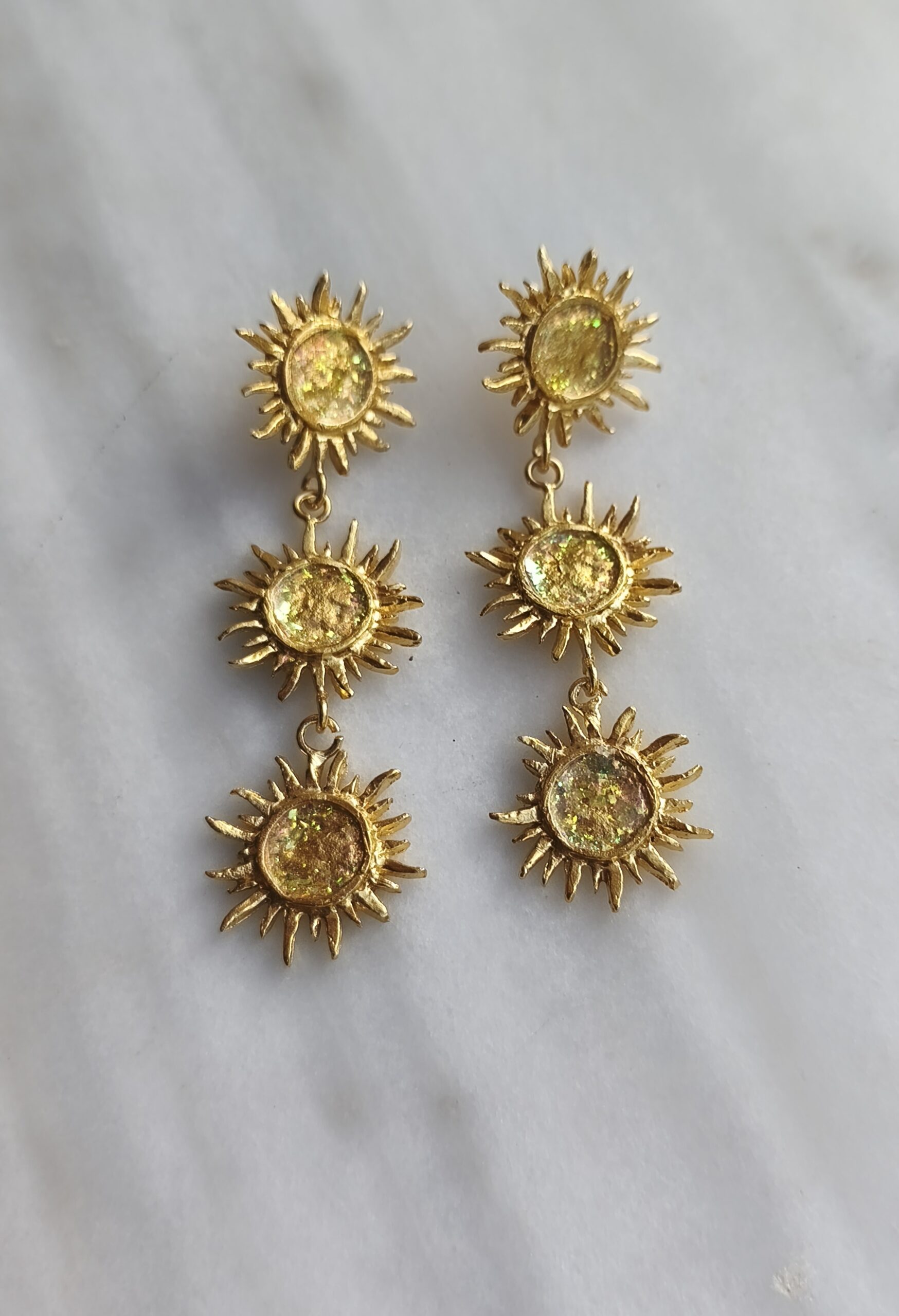 The product is made of 24k goldplated/silverplated bronze with golddust. The length of the earrings is 7,5cm