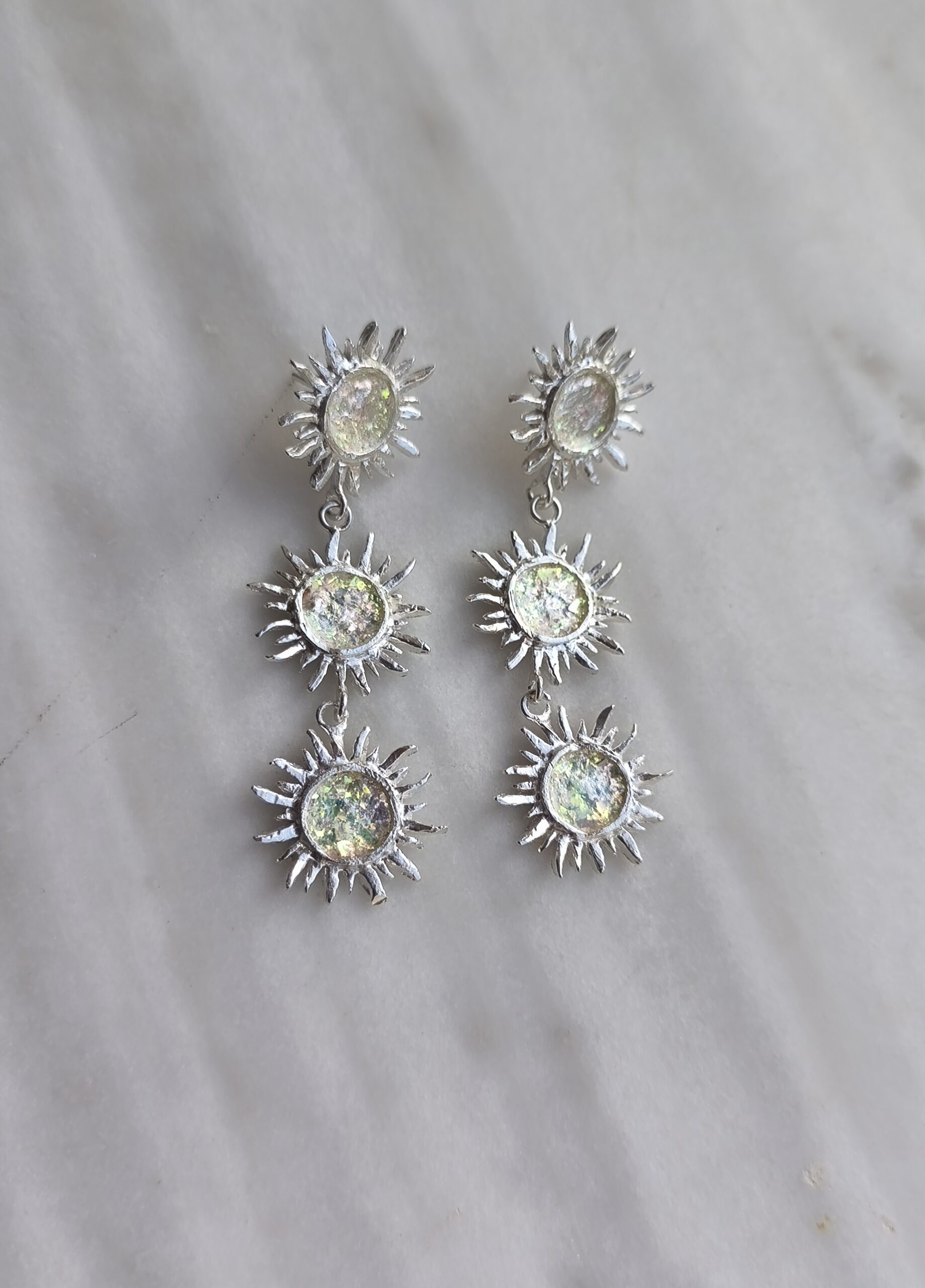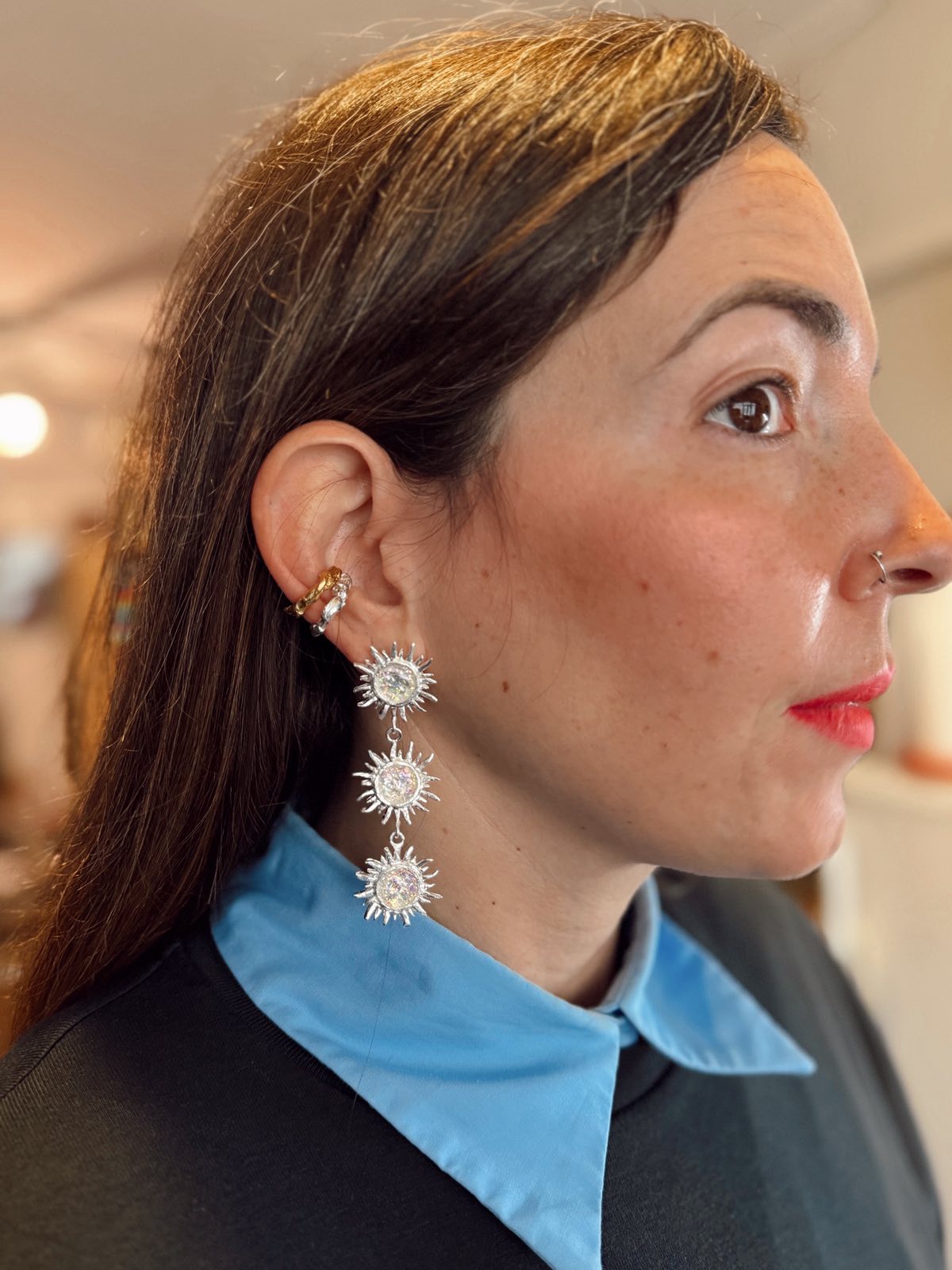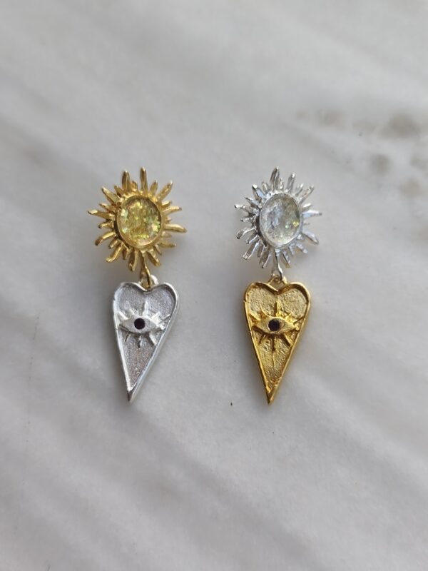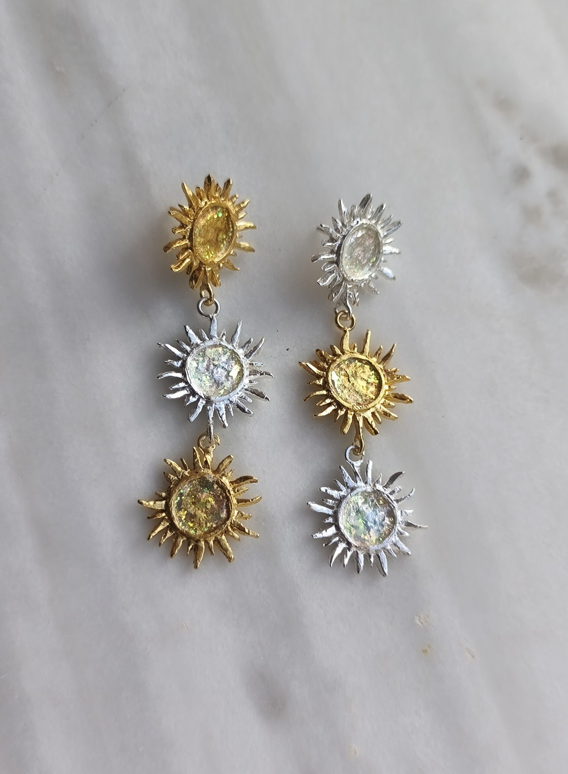 The product is made of 24k goldplated/silverplated bronze with golddust. The length of the earrings is 7,5cm